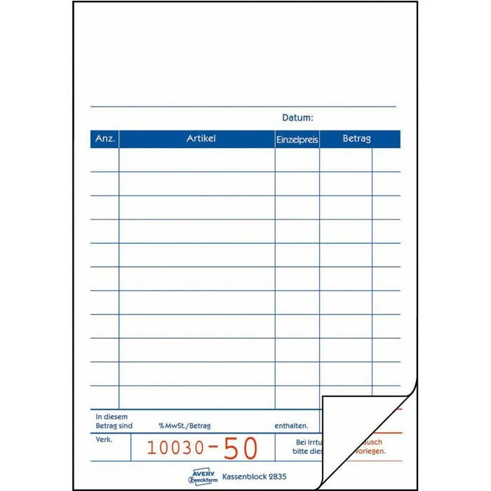 • Inklusive Additionsblatt (Rechenliste für allen Rechnungen)