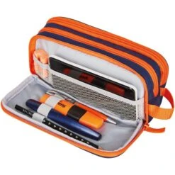 Herlitz Federmäppchen Doppelfaulenzer Etui Neon, Multifunktion Schüler- & Schlamperetui Blau/orange
