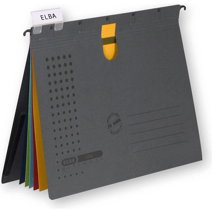 sonstiges: zur Ablage von gelochtem Schriftgut, 5 Trennblätter mit Registerstanzung, schwarzer Organisationsdruck, mit Metallheftzunge, mit Innentasche am Rückendeckel