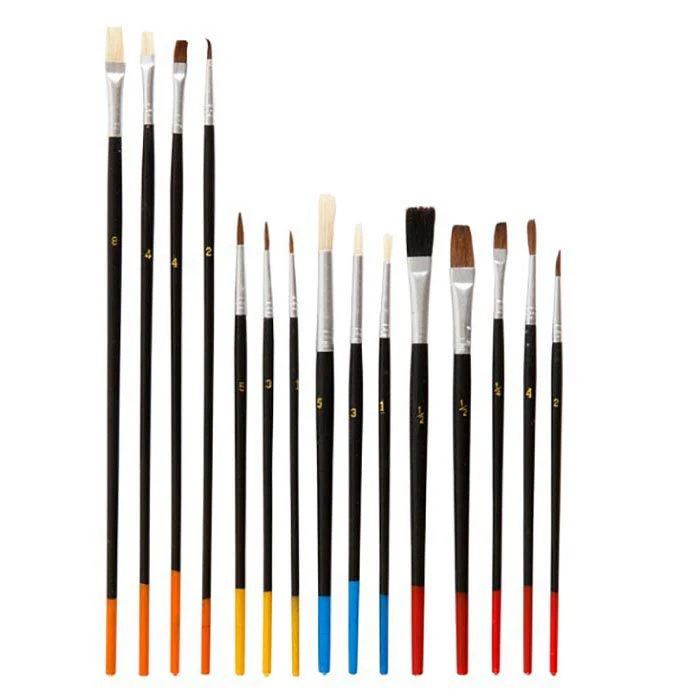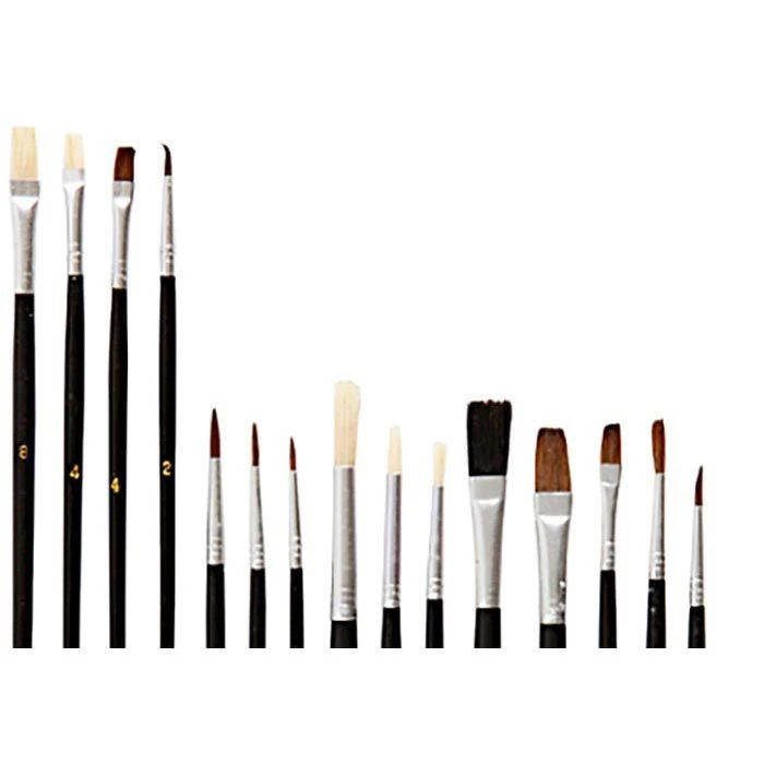 Pinselgrößen: 1, 3, 4, 5, 8 (Borstenpinsel), 2x 1/2, 1/4, 1, 2x 2, 3, 2x 4, 5 (Haarpinsel)