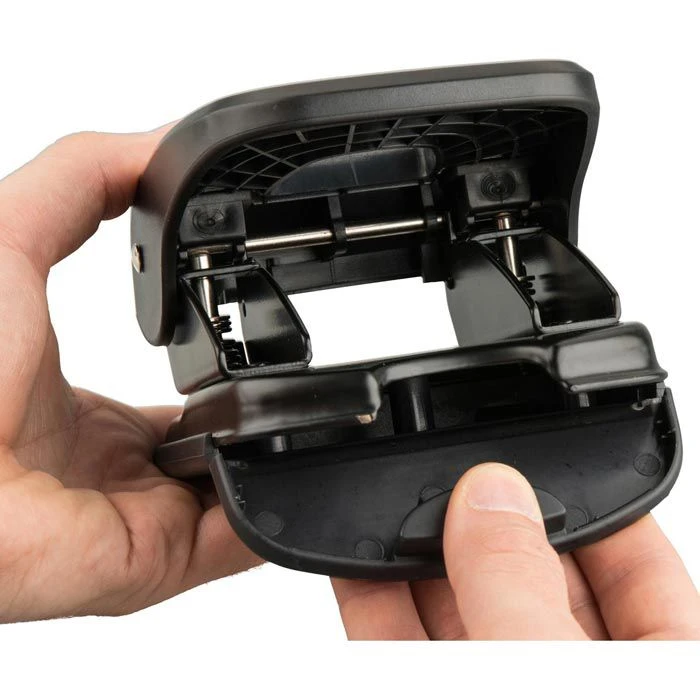 sonstiges: Griff-Verriegelung zum platzsparenden Verstauen, Anschlagschiene einstellbar auf DIN A4, A5, A6, 4-fach Lochung (8x8x8cm Lochabstand) und US-Quart, abnehmbarer Abfallkasten