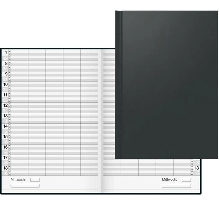 sonstiges: Einteilung ermöglicht bis zu 24 planbare Stunden, 10 Spalten pro Tag, 1 Seite Wochenplanung vor jeder Woche, 1 Seite Notizen nach jeder Woche, mit Kopfleiste und selbstklebenden Beschriftungsstreifen
