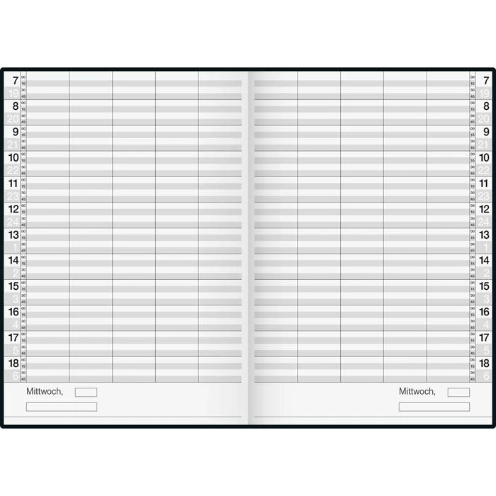 Stundeneinteilung: Mo-So 1-24:00 Uhr (Viertelstundeneinteilung)